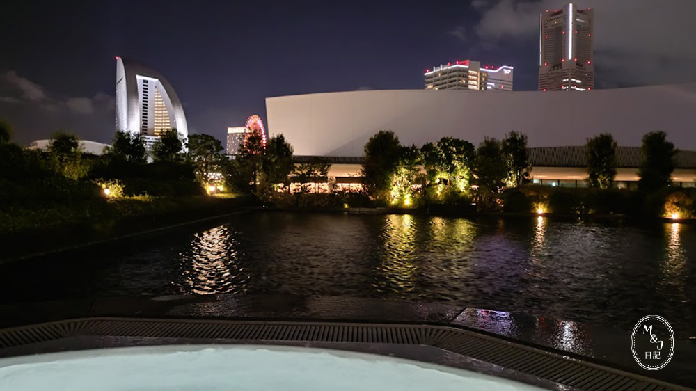 みなとみらいを眺めることができるバイブラバスは、スイミングプールを抜けた外にあります。