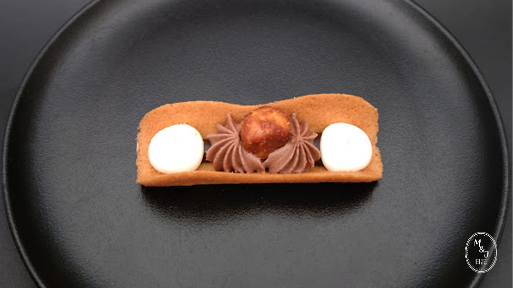 ラングドシャの生地に、生食感のチョコレートとキャラメリゼしたマカダミアナッツが包まれているので、いろいろな食感が楽しめるスイーツです。